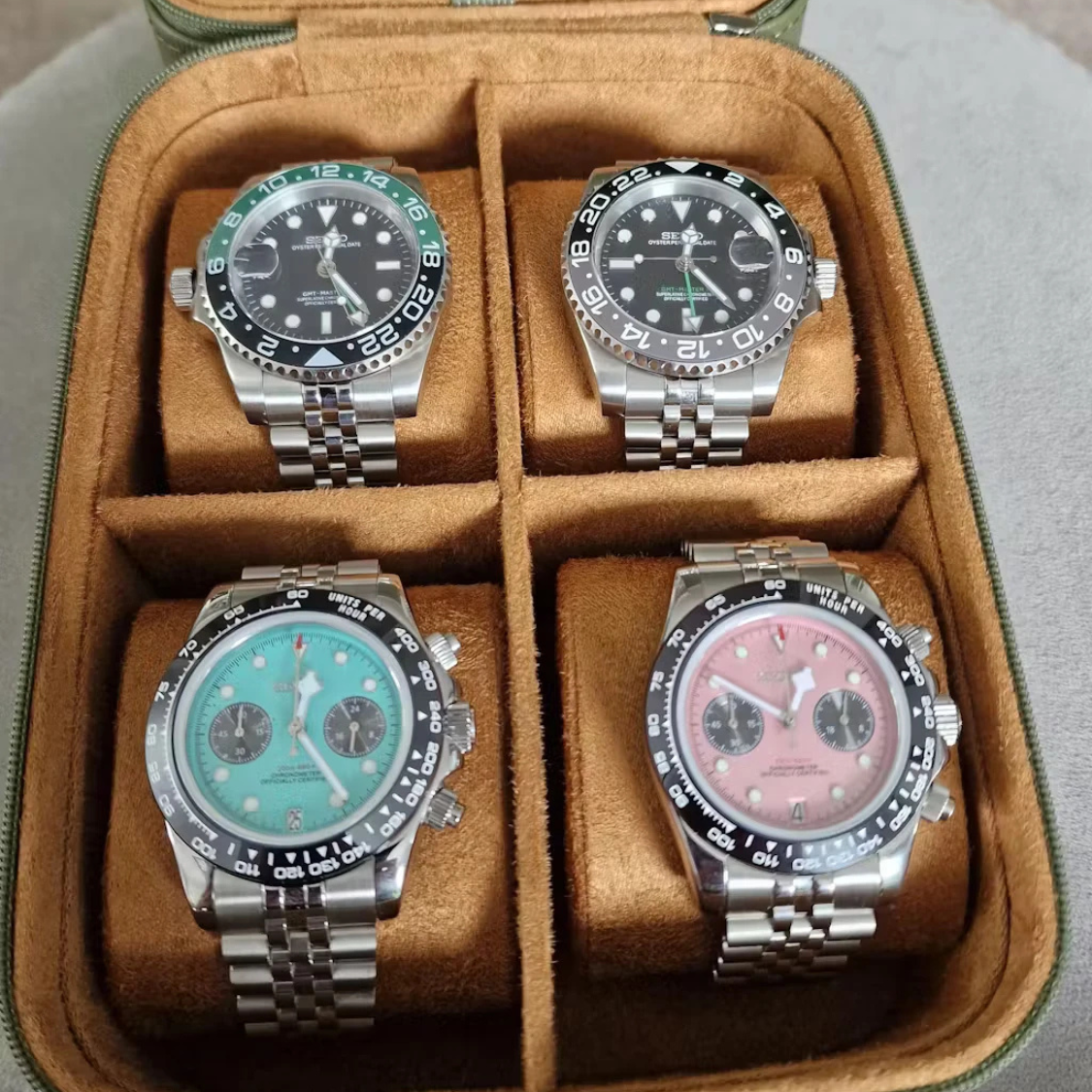 Vi använder äkta Seiko-urverk, men vi är inte affilierade med Seiko som varumärke. Våra klockor är inte repliker — de är unika, handbyggda tidstycken.